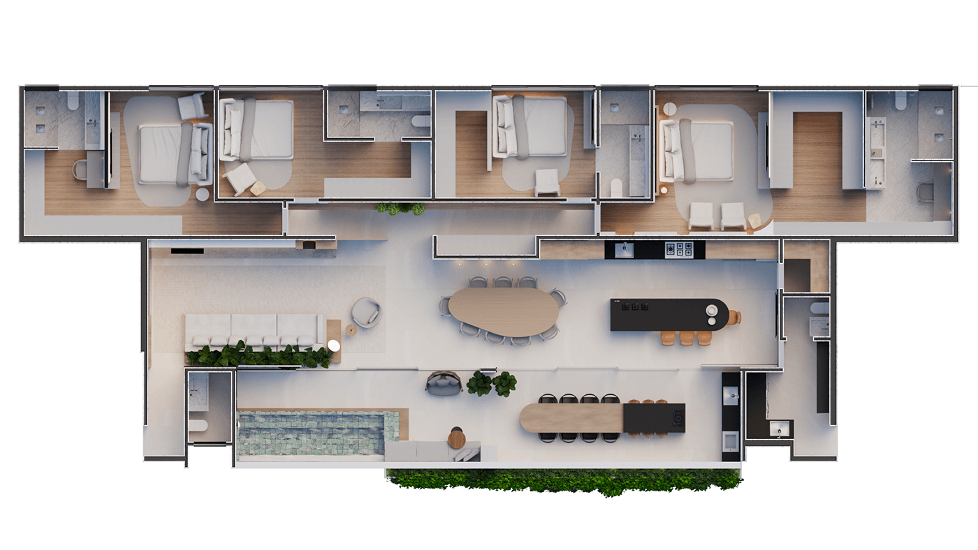 Realismo que convence. Cada detalhe é trabalhado para que o cliente veja o imóvel como se já existisse, transmitindo emoção e despertando desejo imediato.